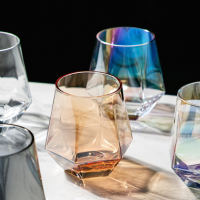 أكواب زجاجية فاخرة من الألماس للبيع بالجملة مع حافة ذهبية أكواب عصير وماء ويسكي باللون الكهرماني المخصص