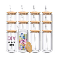 أكواب زجاجية بالجملة مع أغطية وقشات بشعار مخصص 12 أونصة 16 أونصة 20 أونصة مشروب قهوة صودا شفاف مزدوج الجدار