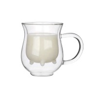 كوب حليب زجاجي مزدوج مقاوم للحرارة بسعة 230/400 مل، كوب هدايا عالي الجودة، كوب حليب مزدوج وردي