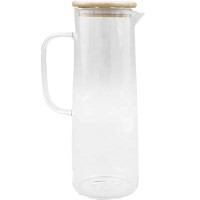 إبريق ماء زجاجي شفاف من البورسليكات بسعة 1.5 لتر مع مقبض وإبريق زجاجي وغطاء من الخيزران