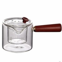 إبريق شاي زجاجي مقاوم للحرارة من البورسليكات الشفاف بمقبض خشبي إبريق شاي زجاجي عالي الجودة للبيع بالجملة