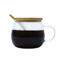 كوب شاي/قهوة/ماء من زجاج البورسليكات للبيع الساخن مع ملعقة من الخيزران وغطاء أكواب قهوة زجاجية