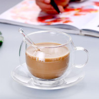 أكواب قهوة مزدوجة سعة 260 مل مع مقابض مصنوعة من زجاج البورسليكات الشفاف للبيع بالجملة