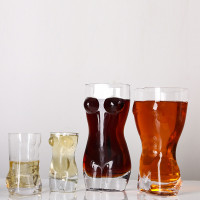 2024 سعر المصنع الساخن واضح شكل جسم أنثوي كوب بيرة امرأة الثدي أكواب البيرة الزجاجية أكواب البيرة